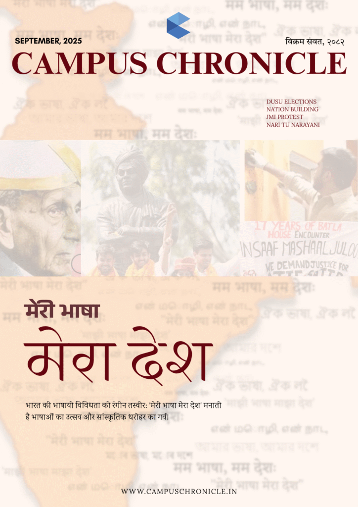 Every language echoes the heartbeat of its people, weaving a tale of identity, belonging, and heritage. In this edition of Campus Chronicle, we celebrate the diversity that makes us strong, where words bridge gaps and cultures converge. From the vibrant energy of DUSU elections to the spirit of nation-building, from the empowerment of women in Navratri celebrations to the voices driving campus change, this issue captures the essence of a young, expressive India.